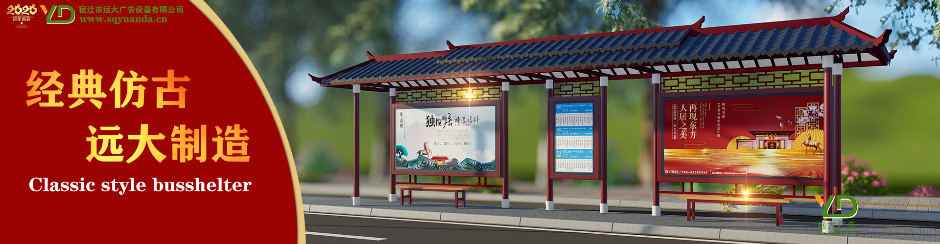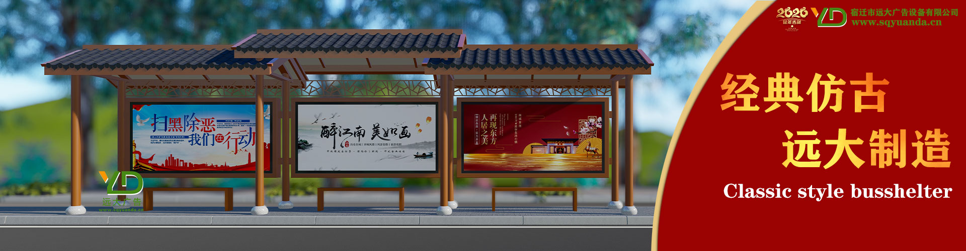 宿遷市遠大廣告設備有限公司是一家專業(yè)生產(chǎn)公交候車亭,公交站臺,閱報欄,指路牌,廣告垃圾箱,滾動換 畫燈箱等系列產(chǎn)品廠家!產(chǎn)品多達上百種,亦可根據(jù)客戶的需求加工制作。